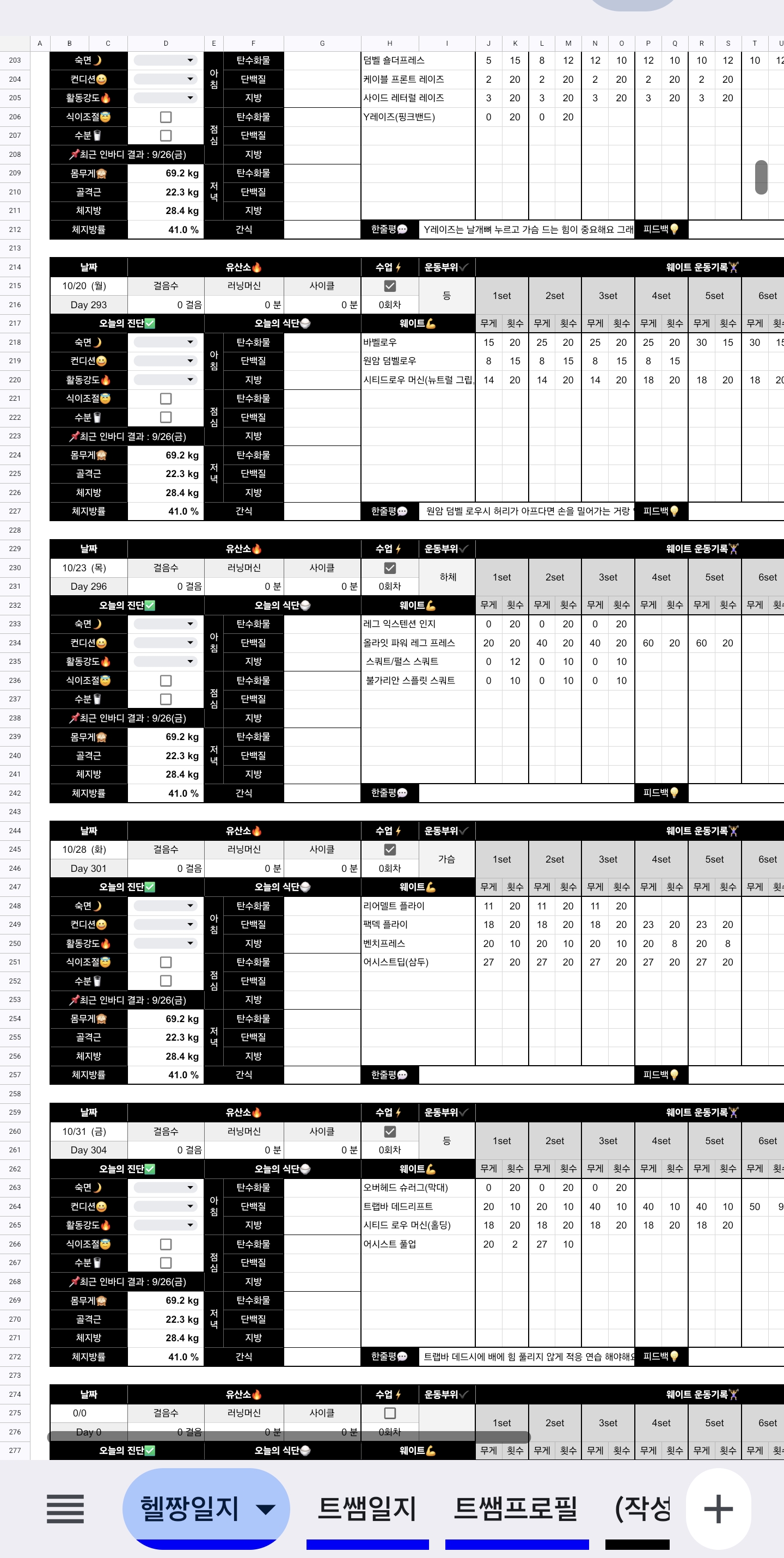 트쌤일지 PACK (2026) | 트레이너 운동일지·회원관리 엑셀·구글시트 양식(프로필, 상담일지, 인바디차트 포함)