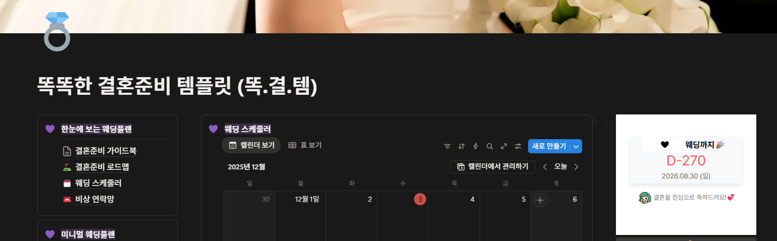 올인원 웨딩노션 17종 (2026) | 똑똑한 결혼준비 템플릿 <똑결템>