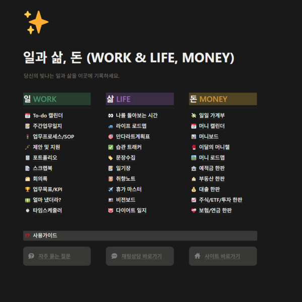 평소에 기본 기능으로만, 기록용으로 노션을 사용했는데 조금씩 공부 하면서 이렇게 가계부 써보고, 이렇게 할일 템플릿 만들어 보고 했는데 아무래도 한계가 있더라구요, 아주 고민끝에, 열심히 알아본 끝에 공여사들 템플릿으로 정착해보려고 합니다 !!