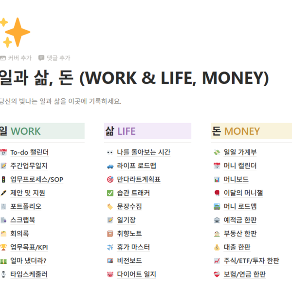 노션 템플릿 30종 모음 (2026) | 당신의 빛나는 <일과삶,돈💛>을 기록하세요