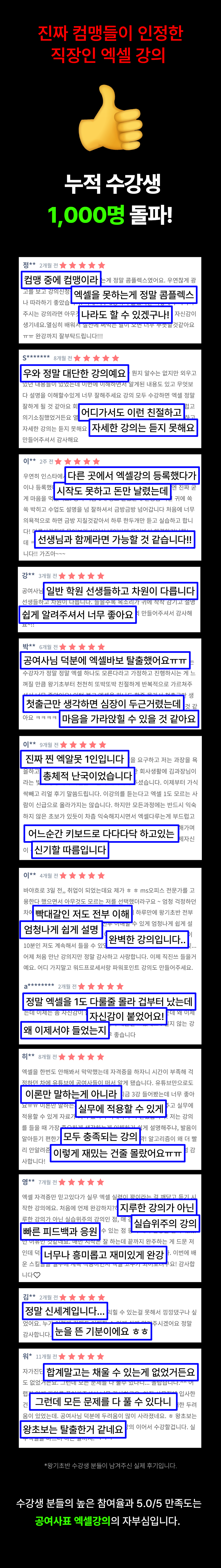 상관 없습니다. 일부 메뉴의 순서나 명칭은 다를 수 있으나, 어떤 버전에서도 사용가능한 기능만을 다룹니다. 실무엑셀에서는 남들과 협업에서 서로 알아들을 수 있는 방식으로 소통하는 게 중요해요. 남들이 잘 모르는 신기능보다는 가장 기본적이고 널리 알려진 함수와 기능을 잘 활용할 줄 알아야 해요!