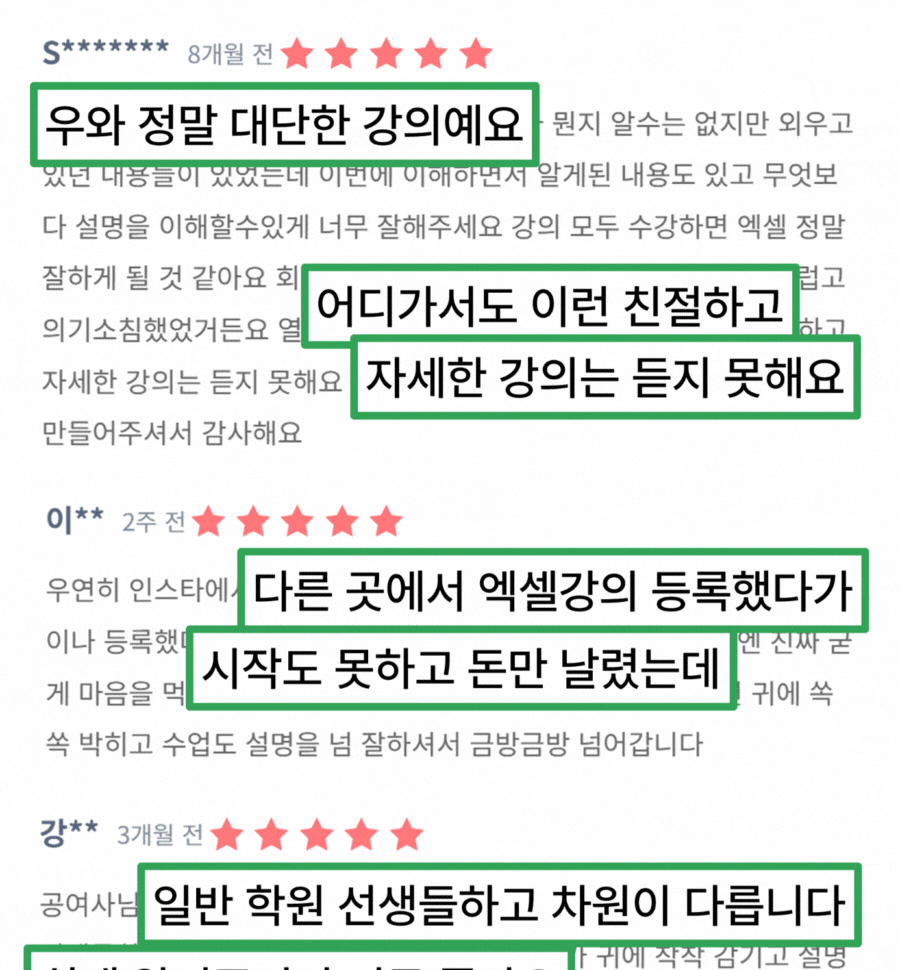 상관 없습니다. 일부 메뉴의 순서나 명칭은 다를 수 있으나, 어떤 버전에서도 사용가능한 기능만을 다룹니다. 실무 엑셀에서는 남들과 협업에서 서로 알아들을 수 있는 방식으로 소통하는 게 중요해요. 남들이 잘 모르는 신기능보다는 가장 기본적이고 널리 알려진 함수와 기능을 잘 활용할 줄 알아야 해요!